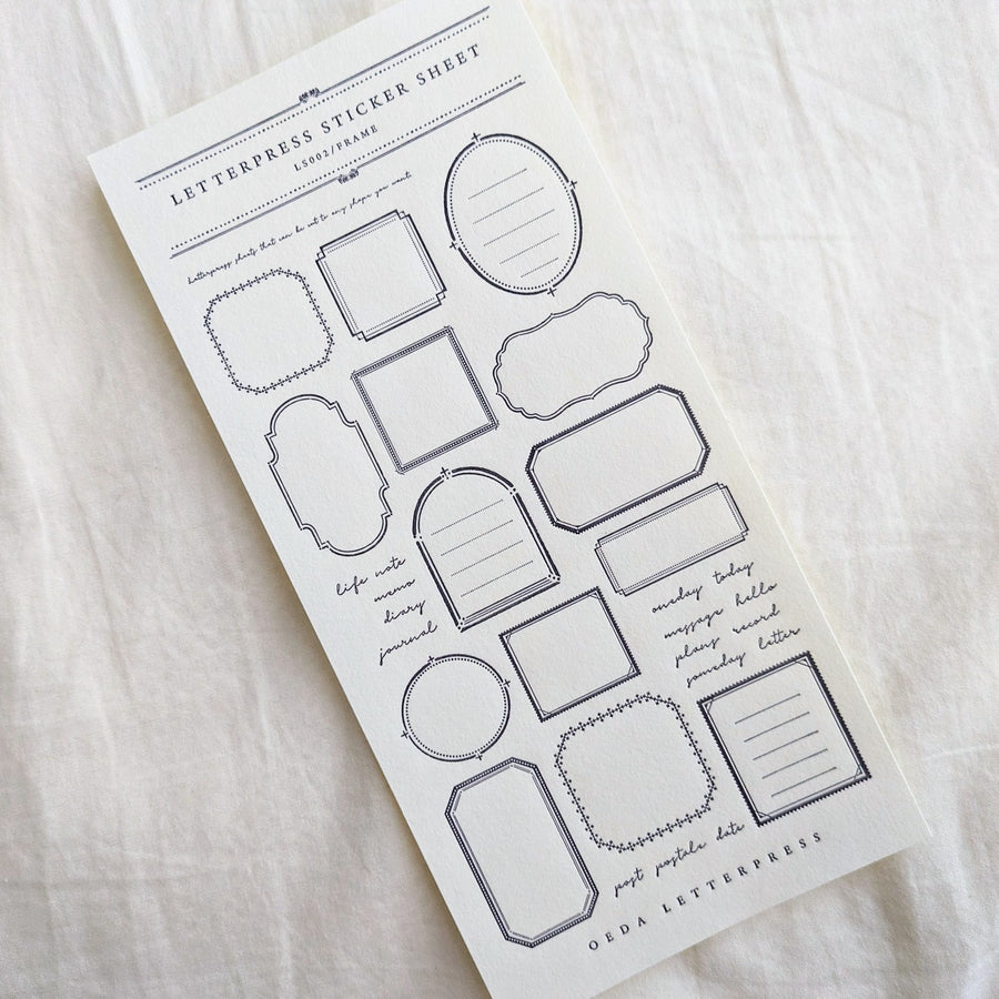 This letterpress sticker sheet is designed by OEDA LETTERPRESS, a Japanese company that produces letterpress paper goods and stationery.