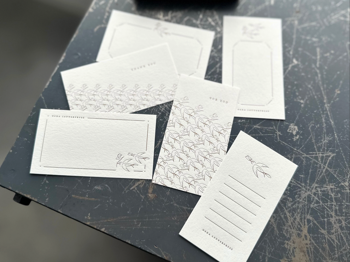 OEDA RETTERPRESS's paper goods feature beautiful letterpress printing on high-quality paper with a pleasant texture, making them sharp and stylish stationery for adults.