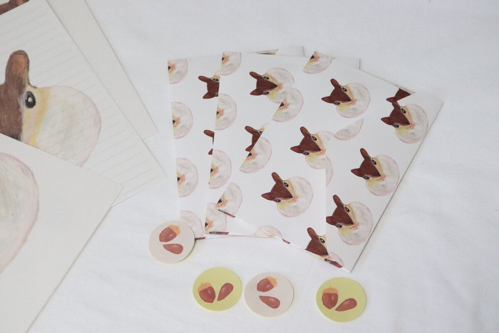 This is a Letter Set with Squirrel by Tegamiya (matsumi yoshimura), who designs stationery in Japan.
