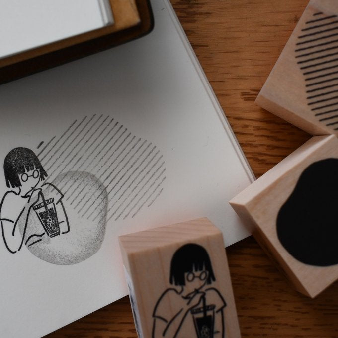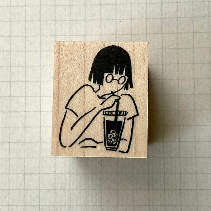 This rubber stamp 'Fumiko drinking iced coffee' was created by MA7stamp, a popular stamp artist in Japan.
