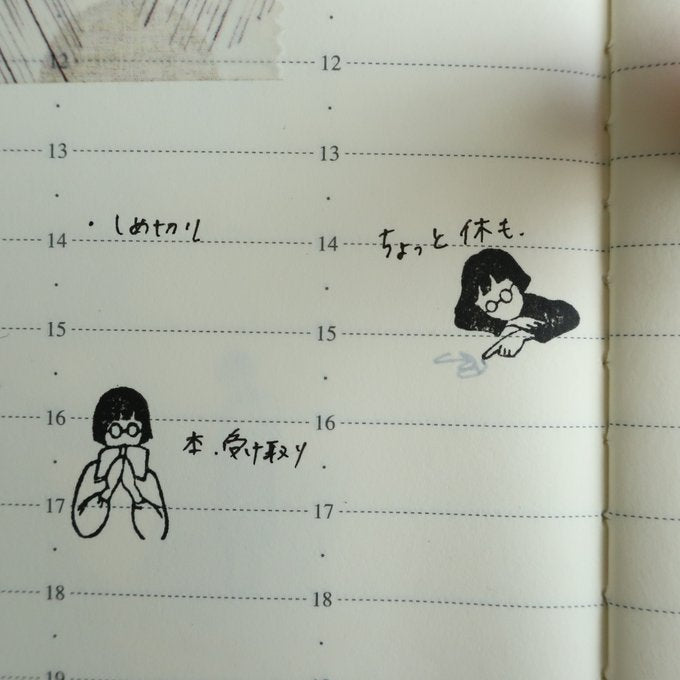 This rubber stamp 'Fumiko fidgeting' was created by MA7stamp, a popular stamp artist in Japan.