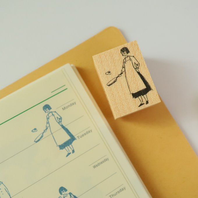 This rubber stamp 'Fumiko with frying pan' was created by MA7stamp, a popular stamp artist in Japan.