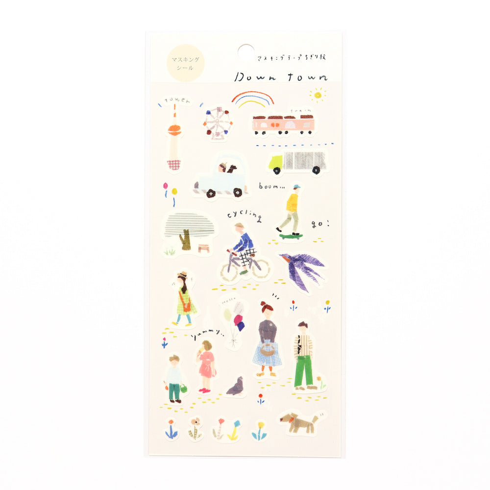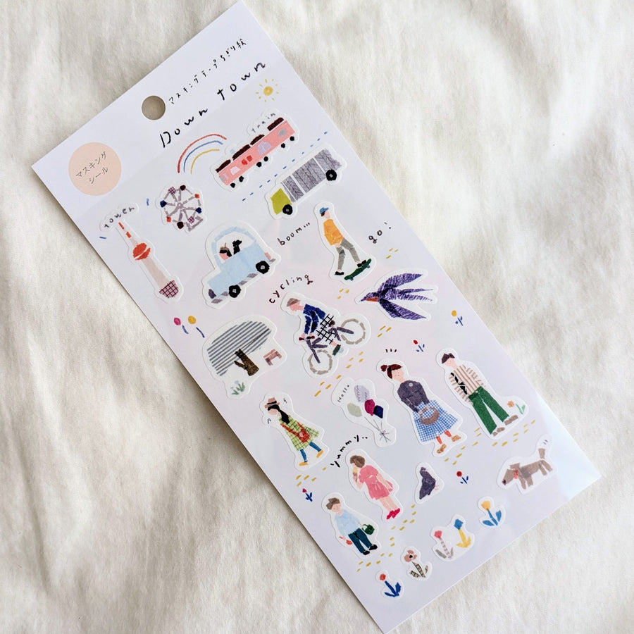 Masking Sticker 'Down Town' designed by popular Japanese illustrator Miki Tamura, who designs illustrations by tearing off washi tape.