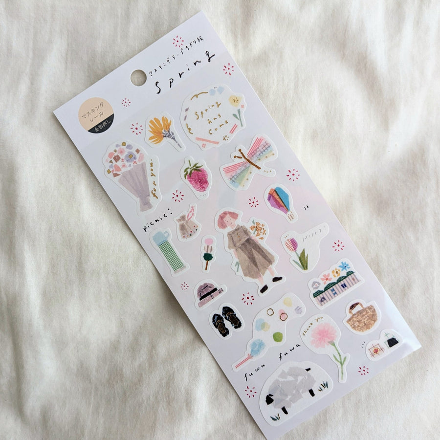 Masking Sticker 'Spring' designed by popular Japanese illustrator Miki Tamura, who designs illustrations by tearing off washi tape.