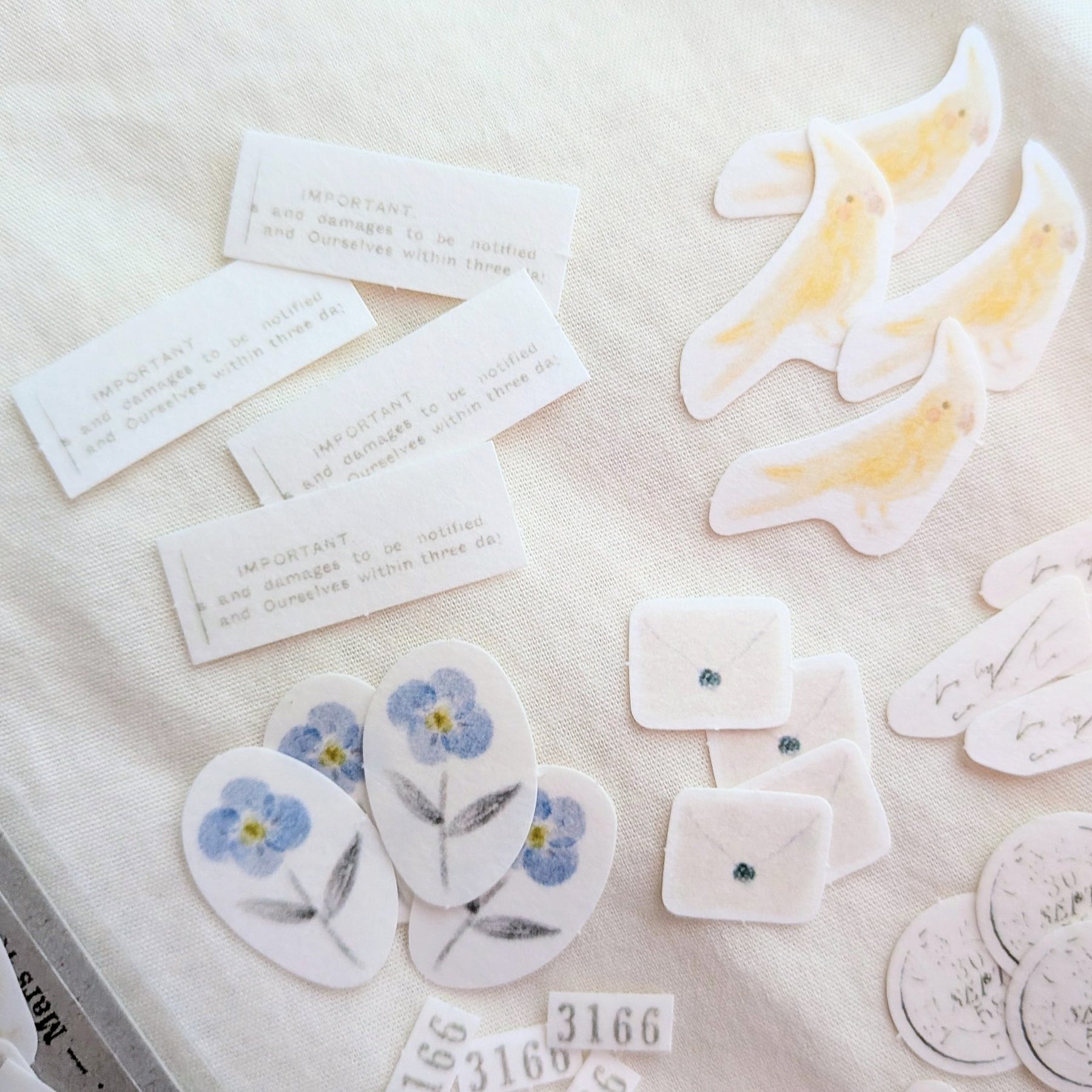 This Flake Sticker 'Humming' is produced by Yohaku, a popular japanese manufacturer of stationery such as washi tape, stamps, and paper goods.