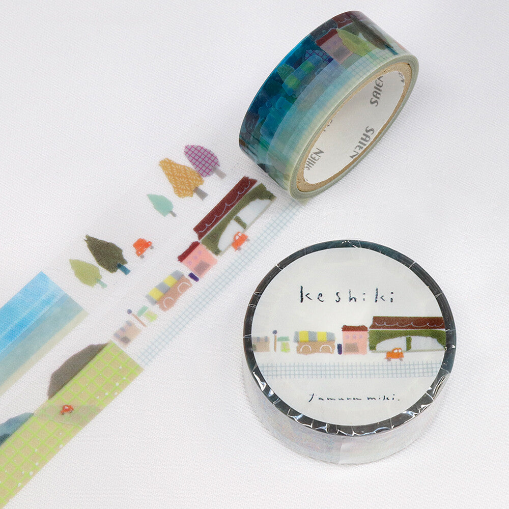 Clear masking tape "Keshiki" designed by popular Japanese illustrator Miki Tamura, who designs illustrations by tearing off washi tape.