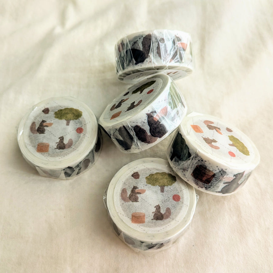 This washi tape 'Let's throw walnuts and play!' is designed by Necktie, a popular illustrator unit in Japan.