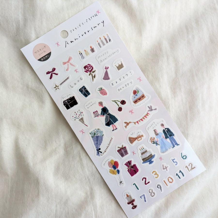 Masking Sticker 'Anniversary' designed by popular Japanese illustrator Miki Tamura, who designs illustrations by tearing off washi tape.