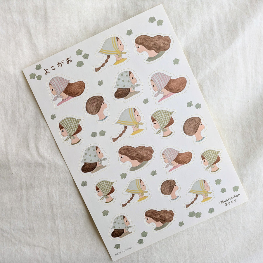 人気のイラストレーターユニット ネクタイさんがデザインしているシールシート「よこがお」です。