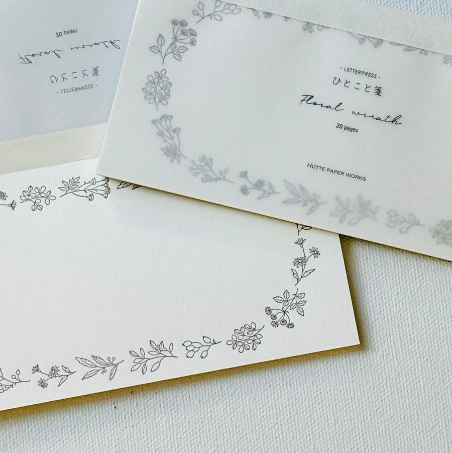 This is a Letterpress Memo Pad (rectangle) "Floral Wreath BL" by Hutte Paper Works, a Japanese brand that produces beautiful stationery and paper goods.