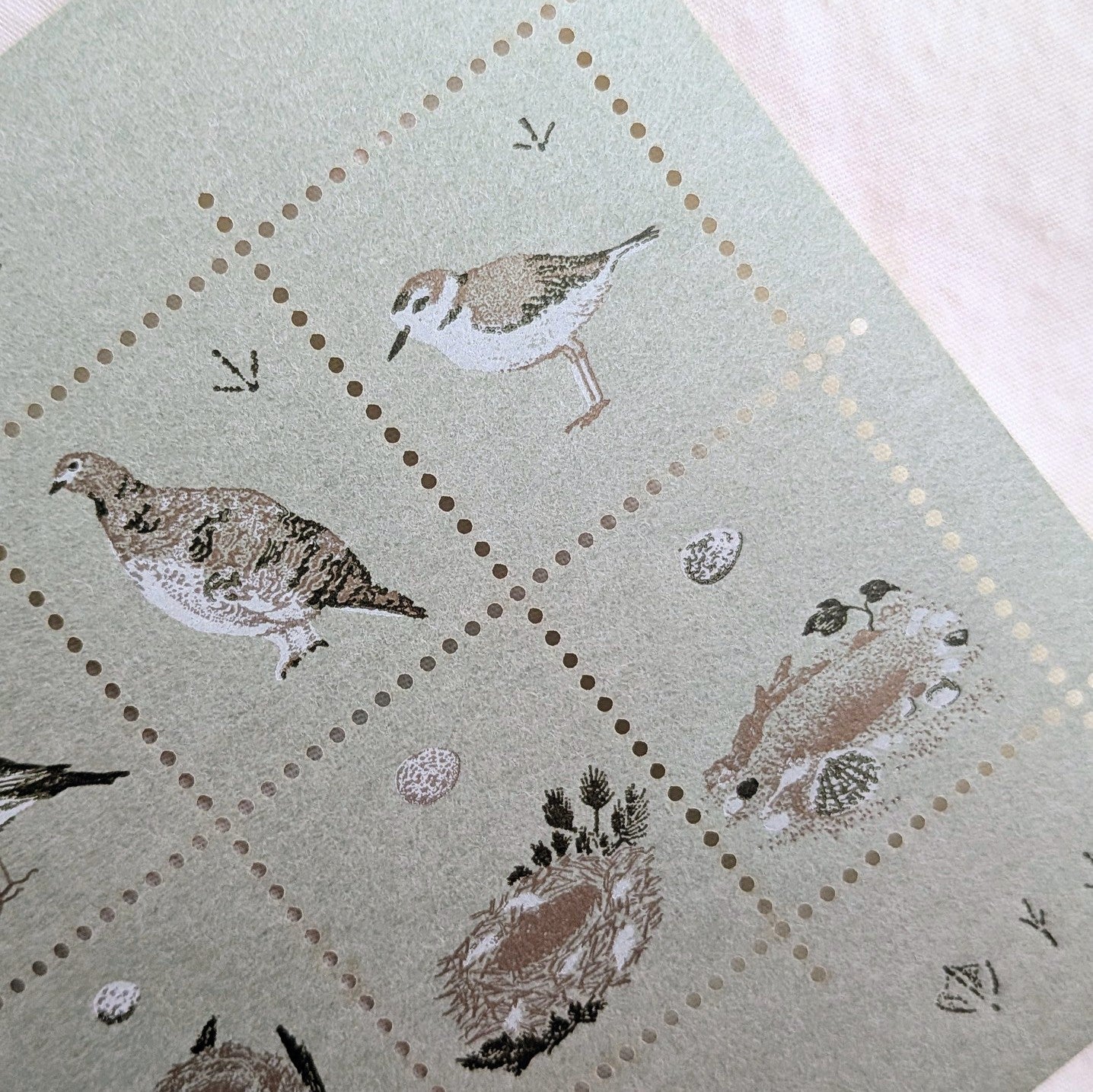knoten letterpress / Stamp-style sticker -Bird and Nest /Green
