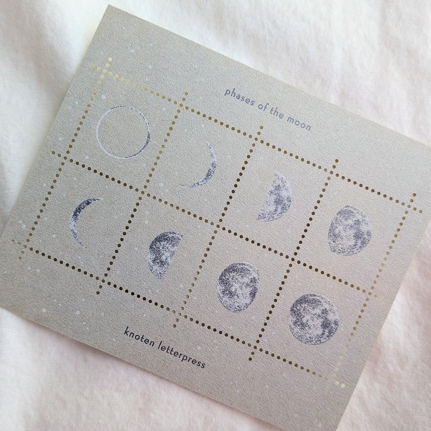 This is the Stamp-style sticker [Phases of the moon] produced by KNOTEN LETTERPRESS, which produces paper goods with motifs of stars, plants and animals, and things around us.