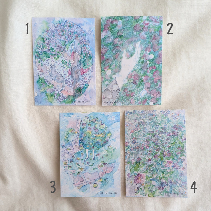 日本で人気の画家、清水美紅さんが制作されたシール4種類「いつからいるの」「一秒」「雨上がり」「一人だから見えるもの」です。